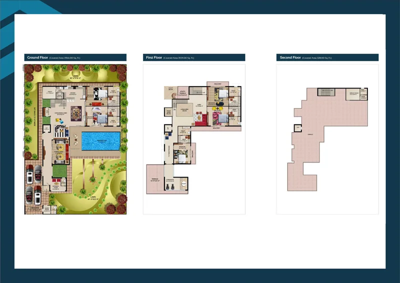 Grand duplex villas with private pool, lush lawns, open terrace, personal gym, lift access, and solar backup.